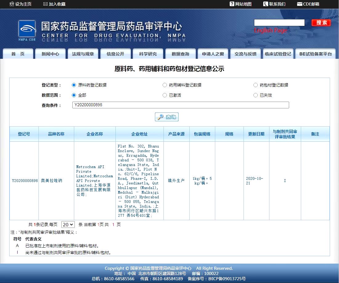 2. 奥美拉唑钠 (登记号:Y20200000898)